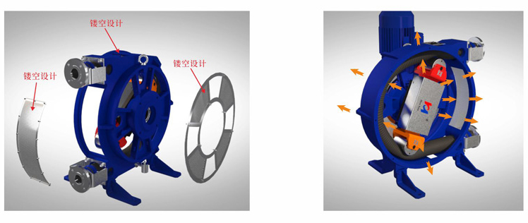 合肥華運(yùn)軟管泵泵體根據(jù)空氣動(dòng)力學(xué)和材料力學(xué)原理,采用鏤空設(shè)計(jì),大大的減輕泵體重量,利用泵轉(zhuǎn)子運(yùn)動(dòng)的動(dòng)能帶動(dòng)泵腔內(nèi)空氣循環(huán)流通,提高泵腔散熱速度,降低泵體工作溫度,延長(zhǎng)整泵使用壽命。