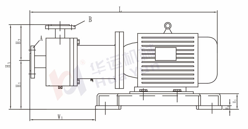 名稱 | 功率KW | 轉(zhuǎn)速r/min | 流量m3/h | 揚程M | L | W1 | H1 | H2 | H3 | H4 | H5 | 法蘭A | 法蘭B | kg | |||||||||||||||